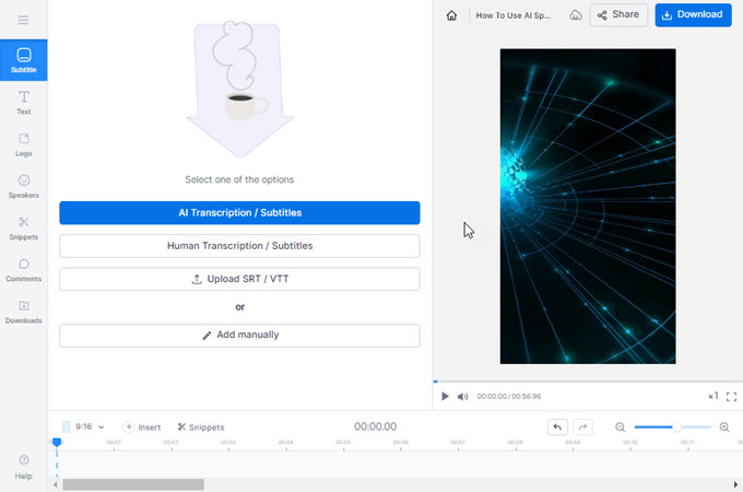 Subly is a web-based program that you can use to add subtitles and captions to your videos in just a few simple steps. Simply log in to its web page using your Google account to access all the features and start enjoying subtitle generation for your content. Additionally, this tool offers other video editing functions that you can use to enhance your content easily. For example, you can add text, logos, stickers, snippets, and additional speakers to your video. Finally, this program supports almost all languages worldwide, enabling you to overcome language barriers in your content.