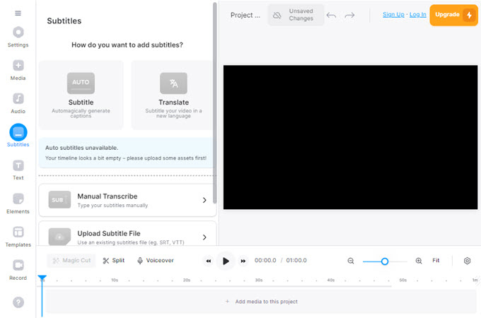 Animaker is another AI-powered online video editing program on the internet that enables users to generate subtitles for their videos. It offers two options for adding subtitles to your videos: you can either add them automatically or type them manually. Additionally, Animaker allows you to download the added subtitles in formats such as .srt, .vtt, .sbv, or .ass. Furthermore, this program supports the upload of video files in various formats, including MP4, MOV, AVI, FLV, and WEBM. Meanwhile, you can utilize its collaboration feature to auto add subtitles to video with your colleagues simultaneously.