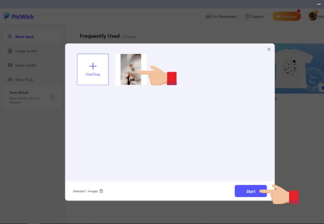 - Upload your image and click Start.