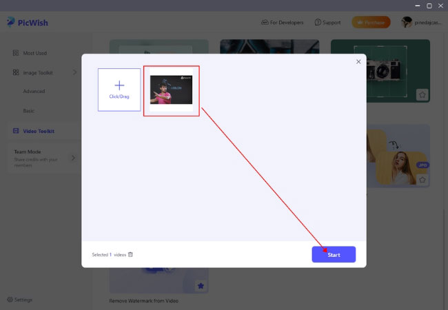- Upload your video then click Start.