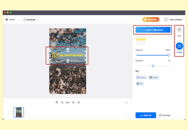 - Finally, add your watermark whether a text or an image then click Save All to get your image.
