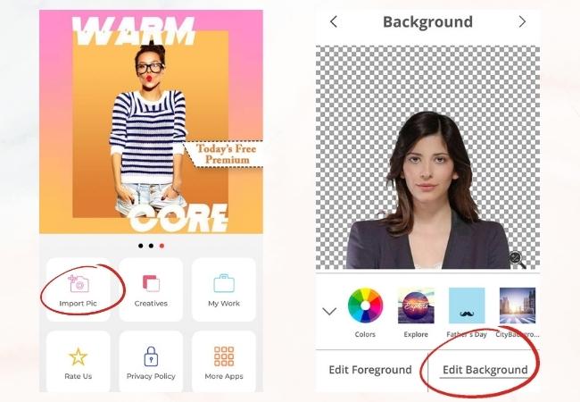 - Import the photo by tapping the “Import Pic” option to load the photo. Choose “Erase” to delete the background.