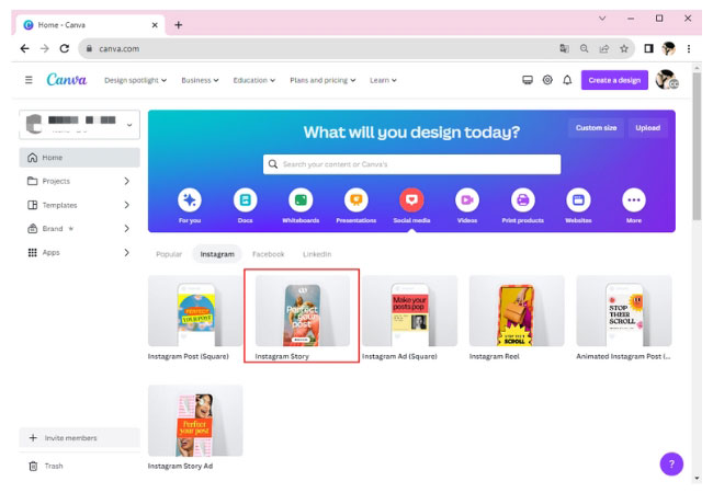 - To start, go to Canva and choose Instagram Story.