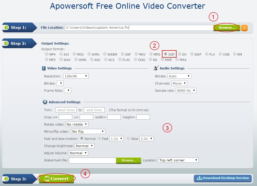 With a clean and user-friendly interface, Apowersoft Free Online Video Converter can help people with every level of skills get the FLV to 3GP conversion done in minutes. Online application as it is, it can convert videos between formats directly on the web. In addition, there are no limits for format and file size of input video files. Let’s explore how it works.