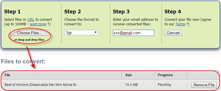 Another free way to convert FLV to 3GP would be to use Convert.Files. It is also a web-based tool allowing us to convert all kinds of files. Unfortunately, we can only convert one file at a time. Anyway, it is not a bad choice.