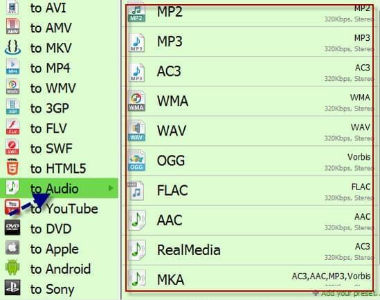 Step 2: choose the output audio format and do audio settings including bitrate, channels and sample rate if you don’t want the automatized one.