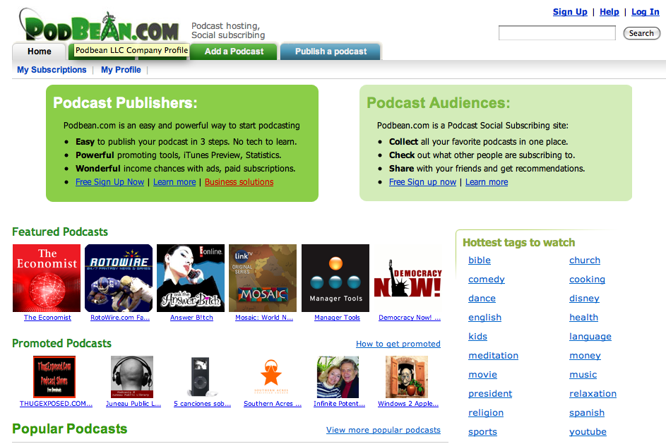 This is one of the most popular podcast hosting sites where you can upload your podcasts for free. Sign up for a free account by going to its homepage and clicking on the sign up link. Select the basic membership if you want to use the service for free. Give all the information required and once done, click on publish a podcast tab to upload your recorded audio file. You can also check out other users’ podcasts and subscribe to those that you like.