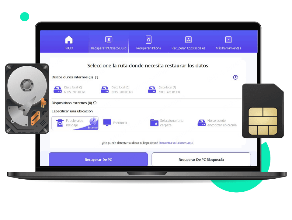 Recupera datos perdidos de PC, papelera, USB, RAW, tarjeta SD, HDD, cámara y otros dispositivos externos