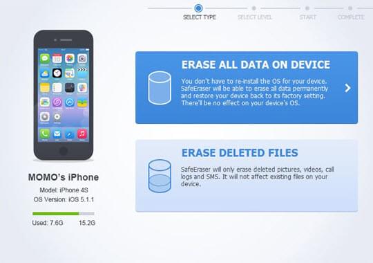 Unlike clicking "Erase All content and Settings", using this iPhone erasing application is not just a simple deletion. It has the ability to clean files off iPhone permanently. Furthermore, it supports erasing many file types, such as video, photo, voice memo, text messages, call logs, contacts, email, reminder, note, calendar, apps, Apple ID account, account information, password, system setting, safari bookmark, and many others.