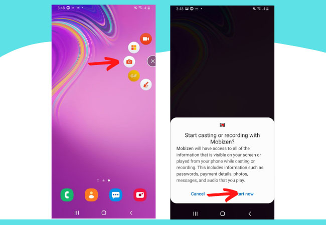 • On your phone, tap the Mobizen icon and tap Start Now to start mirroring.