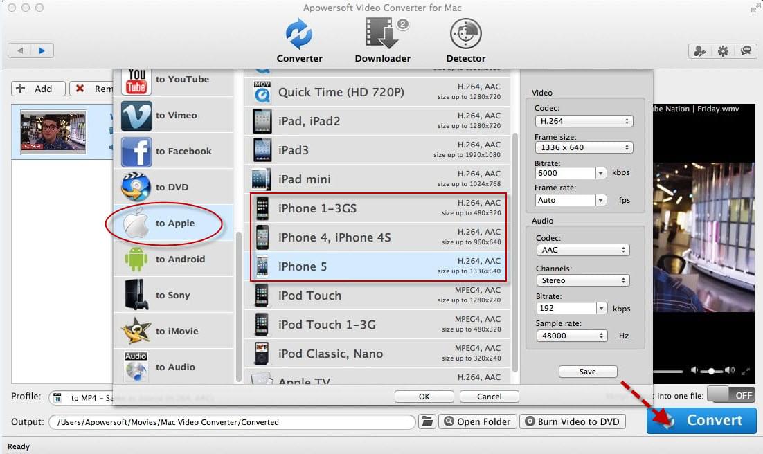 As for Mac users, you can use Apowersoft Video Converter for Mac, a program specially designed for Mac users to convert WMV files to go along with iPhone efficiently. Compared with other similar products that work on Mac, this tool features a wide range of video formats including MOV, AVI, MKV and many other standard and high definition video formats that make it stand out. To get a more specific experience of this program, just follow the instructions of how to play WMV on iPhone below: