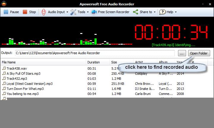 - Recorded file would be automatically saved on your hard drive, press “Open File” to find it.