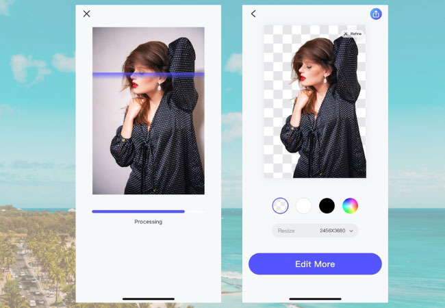 - The app will automatically remove the background showing you a precise result.