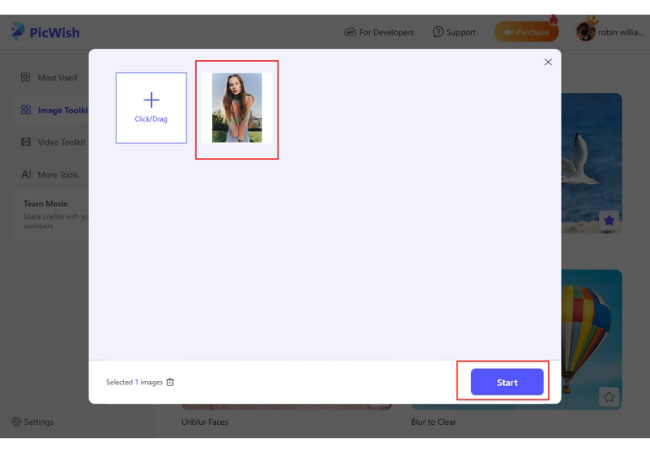 - Upload the image and click Start.