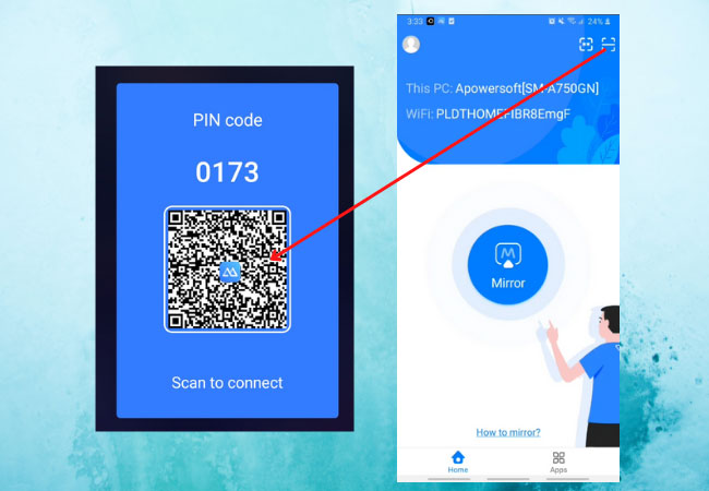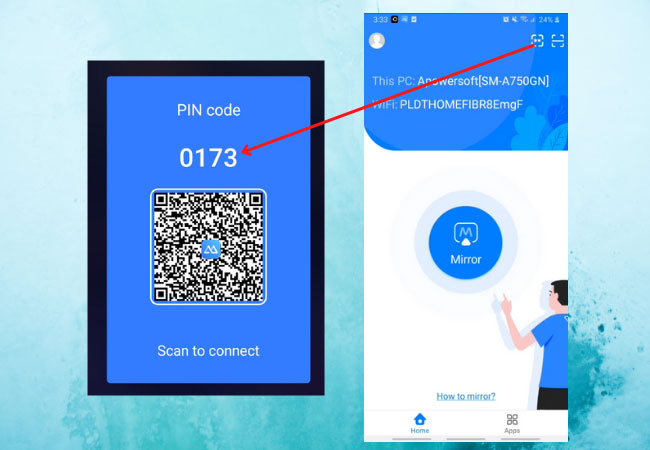 - Tap the scanner icon then scan the QR code displayed on your TV.