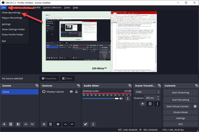 - In order to view the recordings, go to the “File” menu and select the “Show Recordings” option.