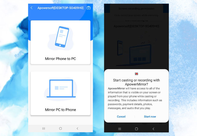 hit start now apowermirrror