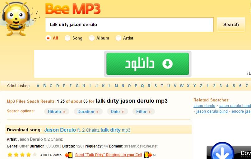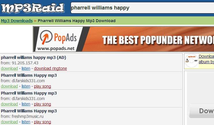 Last on our list of top 10 music download is Bomb-MP3. Just like the others, you can search songs via latest downloads, recent searches, currently being listened and through related keywords. With it, you have an option to play the audio track, download it, add to playlist or grab the whole album. Be informed that adding to playlist and downloading album functionalities will redirect you to other MP3 search engines, however playing music and grabbing tracks remain on the site.