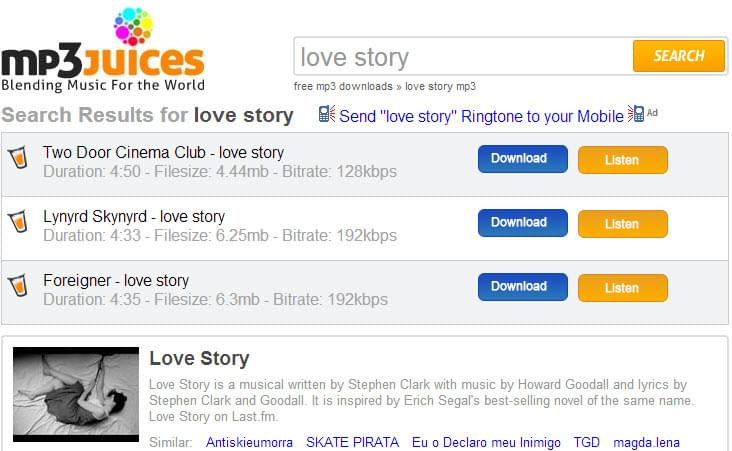 Continuing with our top music sites is MP3juices. Don’t be surprised if you will be greeted with a big blank search button, there are sites like MP3 juices that feature the same interface. Yet when you type in music keywords, a nice fresh looking search result page will come out. It doesn’t have tons of advertisements but be wary about the download manager being offered on top of the page.