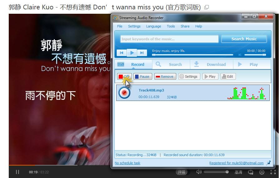 Go to tudou.com and play one of your desired video. At the meantime, click the “On” button on the recorder to start recording. While recording, the software will identify the music info of recorded music automatically.