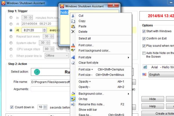 Sometimes, you're occupied with stuffs when working on computer and may easily forget some important events. With Windows Shutdown Assistant, you can let your computer auto-display messages on desktop at a specified time and create a note as a reminder. The reminder will show in full screen or popup window.