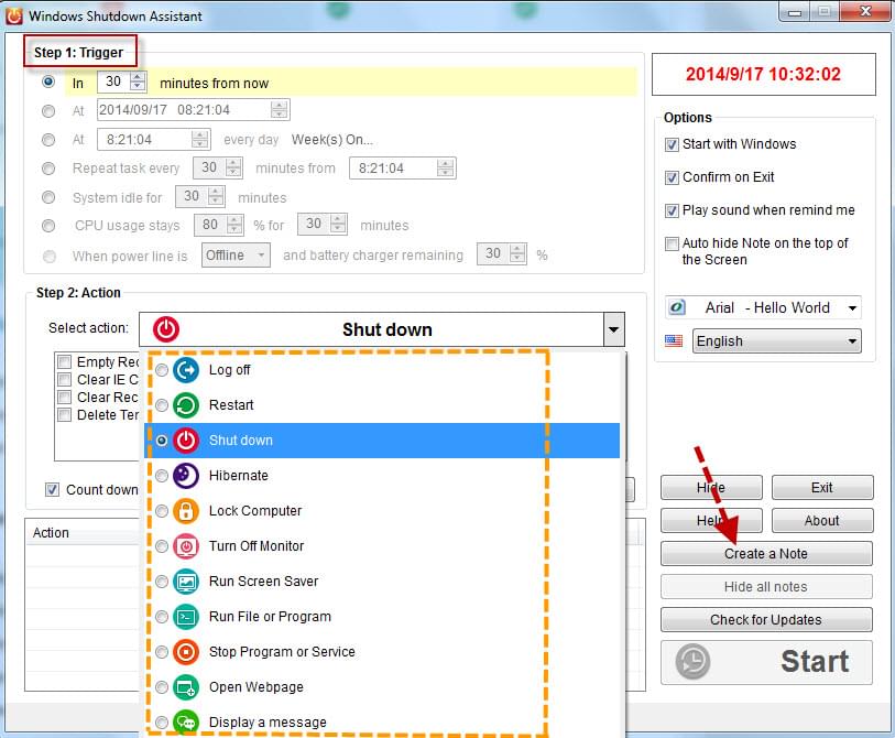 Compared to the limited functionalities of Task Scheduler, Windows Shutdown Assistant comes strong with its diverse features. This application can shut down, restart, hibernate and log off your computer. Also, it can automatically run programs as well as open URLs and files. Moreover, it can display messages, reminders and notes that are all fully customizable.